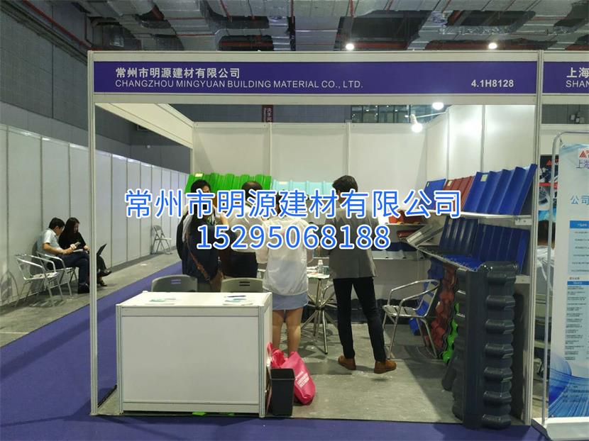 常州市明源建材有限公司(以下簡(jiǎn)稱本公司)參加第十一屆上海國(guó)際新材料展覽會(huì),本次展會(huì)本公司帶了許多公司新型產(chǎn)品為觀眾展示,其中有許多是觀眾需要的產(chǎn)品,引來(lái)了多人的關(guān)注和咨詢。本公司生產(chǎn)的新型防腐瓦是許多工廠和公司需要的產(chǎn)品,這可以為廣大廠房節(jié)省許多后期維修的費(fèi)用,還方便了人們的時(shí)間和精力,相比彩鋼瓦和鐵皮瓦,防腐瓦是不會(huì)生銹的,所以許多客戶都來(lái)了解產(chǎn)品。